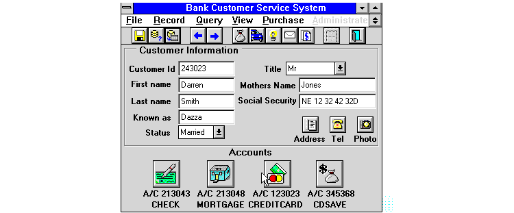 A region is a rectangle or line that separates a logical grouping of fields from others in the block. In Figure 2-4, the rectangle that separates the Customer Information fields from the Accounts icons is a region.