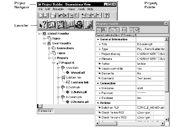 Project Builder, a component of both Forms Developer and Reports Developer, enables you to simplify your software configuration management tasks so you and your team can focus on your primary objectives: designing, coding, and testing applications.