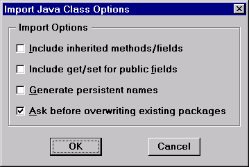 To display the Import Java Class Options dialog box, click Options... in the Import Java Classes dialog box.